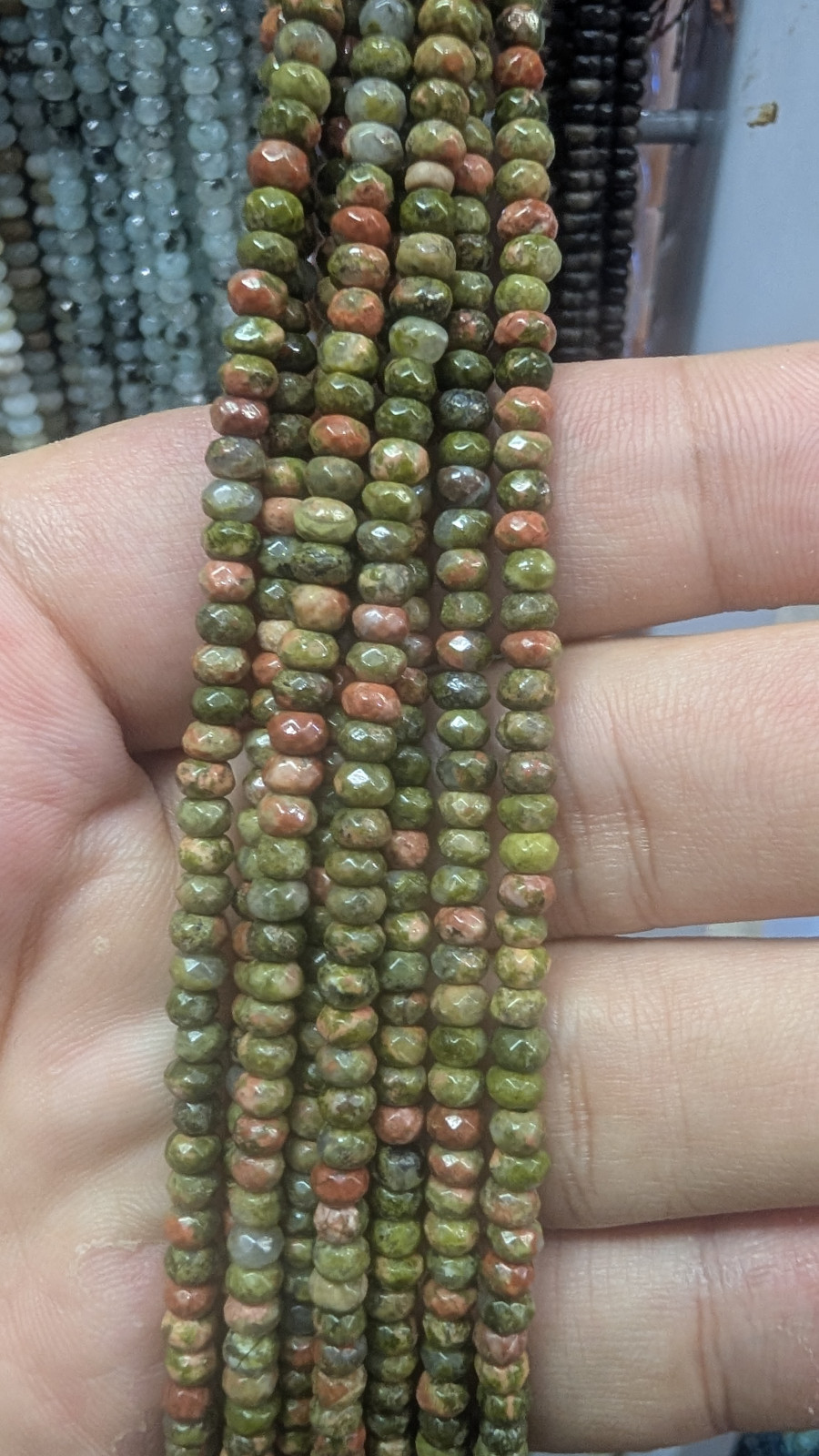 Tags: 4mm, Wholesale, Faceted, Unakite, Disc, Long, Strand