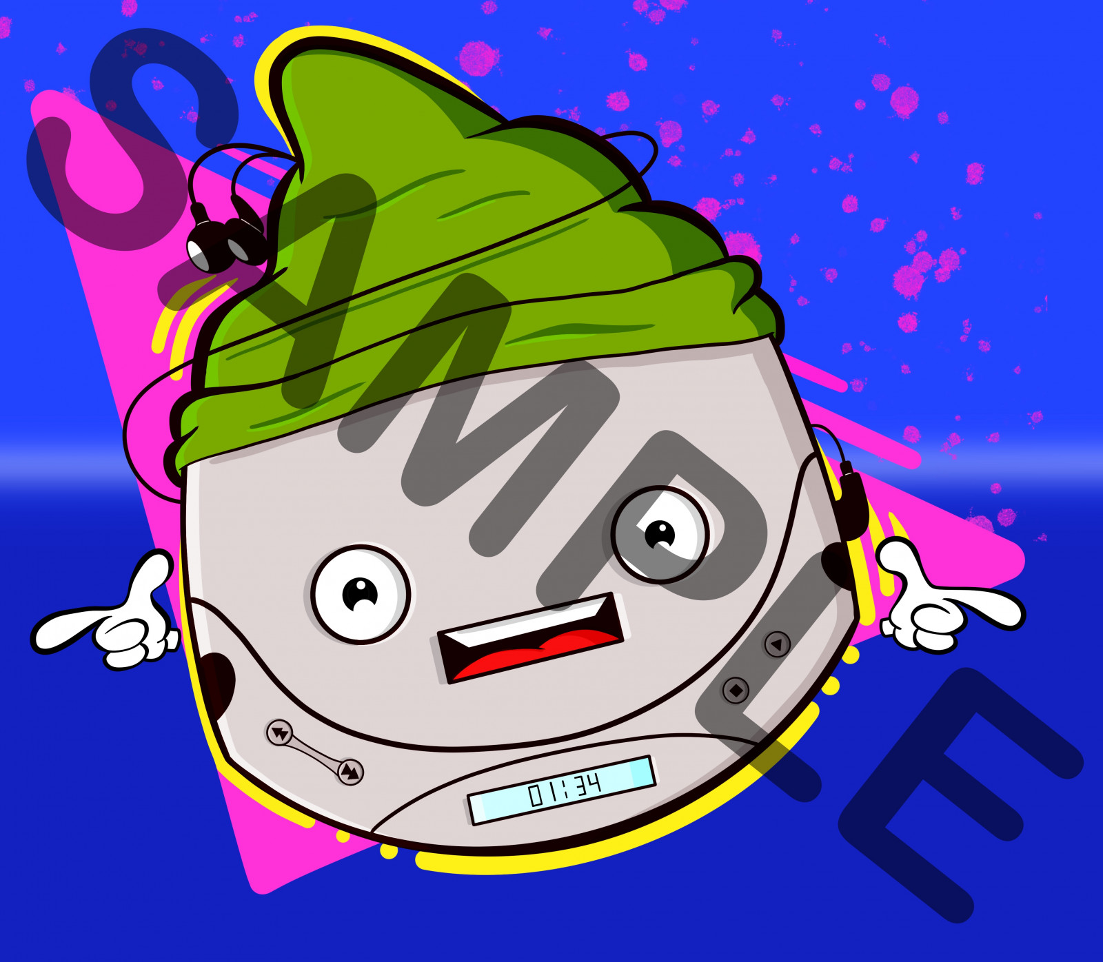 This character lives somewhere between Saturday morning cartoons and late night bedroom playlists. Back when skipping tracks felt rebellious and rewinding meant commitment. The original portable music player, soft plastic curves and a personality built from mixtapes and muscle memory.
