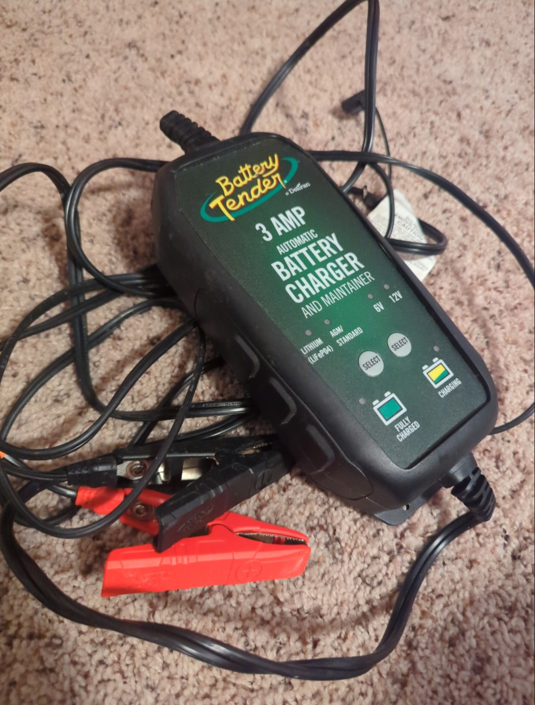 3 amp Battery TenderⓇ trickle charger. I bought it brand new from O'Reilly and have used it maybe twice, so it still works like new.