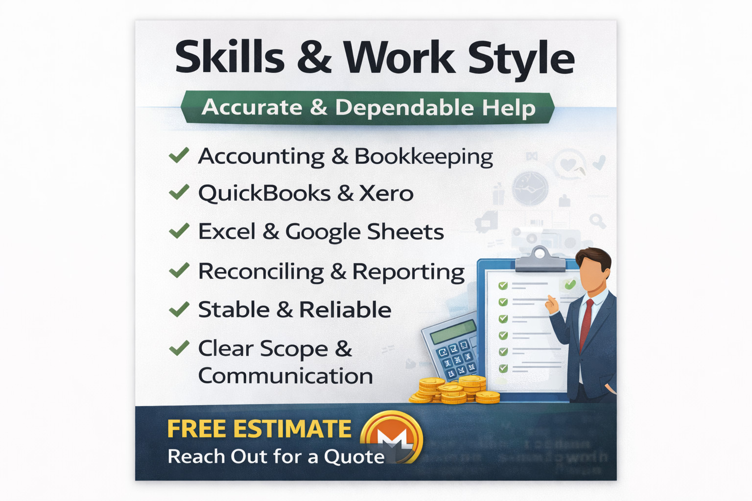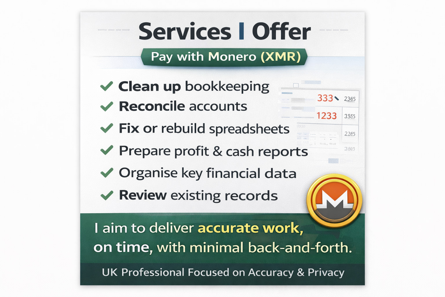 I work with individuals and small businesses who want their numbers organised, accurate, and easy to understand. Whether records are behind, inconsistent, or simply unclear, I focus on producing reliable outputs you can use.