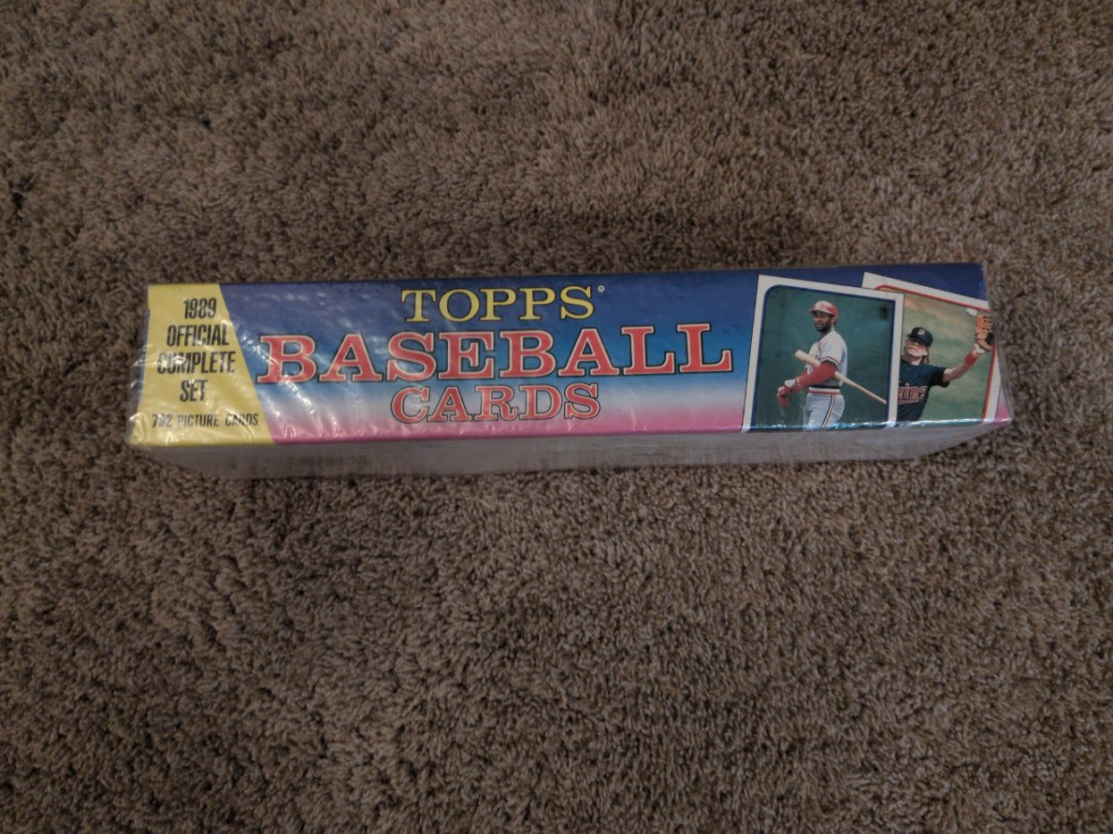 A sealed, full set of 1989 Topps baseball trading cards in its original box. Unite your passion for baseball with your interest in Monero! 792 picture cards in total.