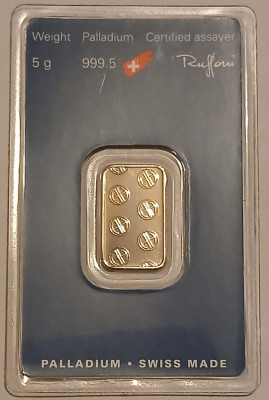 PALLADIUM 5 Gram Bar Argor-Heraeus Certified in Assay Unopened 999.5 Fine