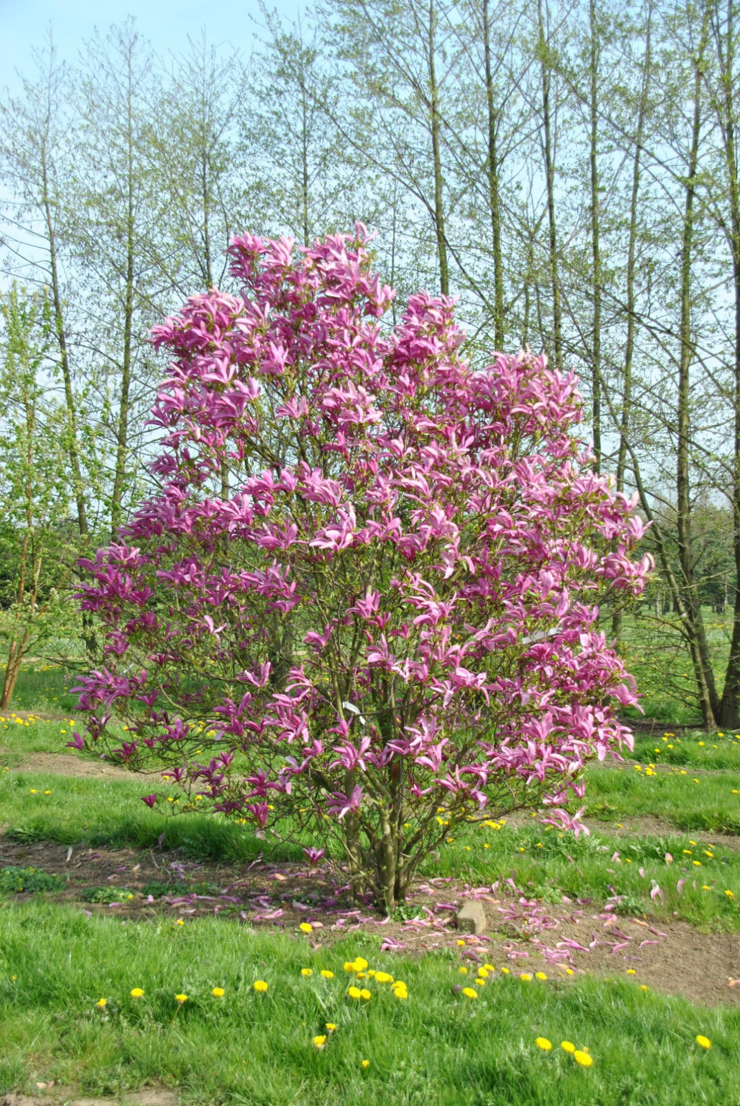 Beautiful flowering magnolia with stunning deep purple-pink tulip-shaped blooms in spring. Compact growth habit, ideal for small gardens and containers. Hardy and easy to grow. Flowers appear before leaves, creating spectacular spring display. Reaches 3-4 meters at maturity. Prefers slightly acidic soil and partial shade to full sun.