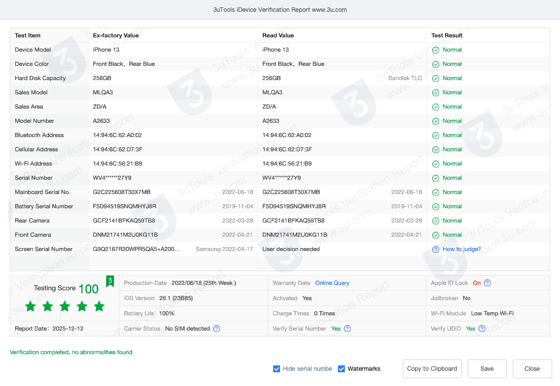 New battery, replaced on 12/11/2025 with an Apple-recognized battery (Ti chip).