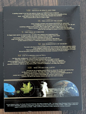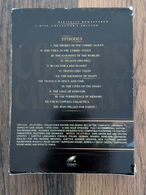 The complete, digitally remastered collector's edition of the 1980 "Cosmos" TV series featuring Carl Sagan. I have personally verified that all the discs work correctly.
