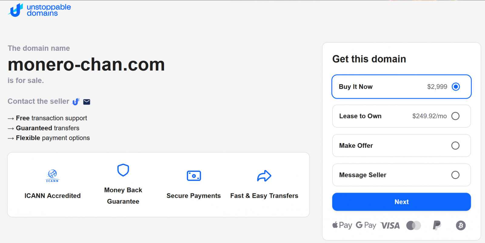 Tags: Domain Names, Domains, Names, Usernames, Monerochan, Monero-chan, DNS, UD, Unstoppable Domains, ENS, ICANN, Web3, Blockchain, NFT