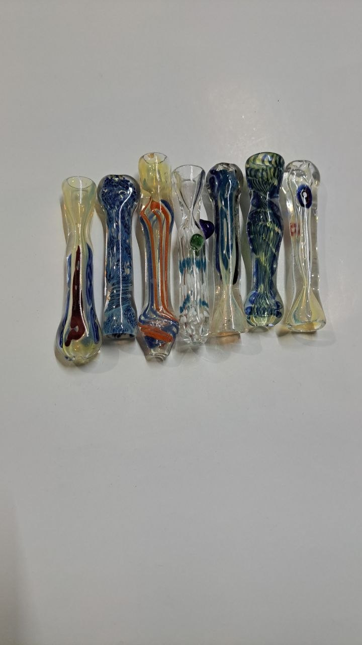 Assorted chameleon glass chillums. Heavy glass assortment of 4 designs.