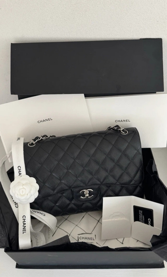 Sac Chanel Timeless Jumbo noir cuir caviar année 2012 livré avec tout son packaging ainsi que sa carte d'authenticité,livraison remis contre signature ,envoi via le transporteur de votre choix (DHL ,FedEx,UPS privilégiés pour ce genre d'objet) ,plus de photo en privé si vous le souhaitez,livraison incluse dans le prix final à ma charge .
