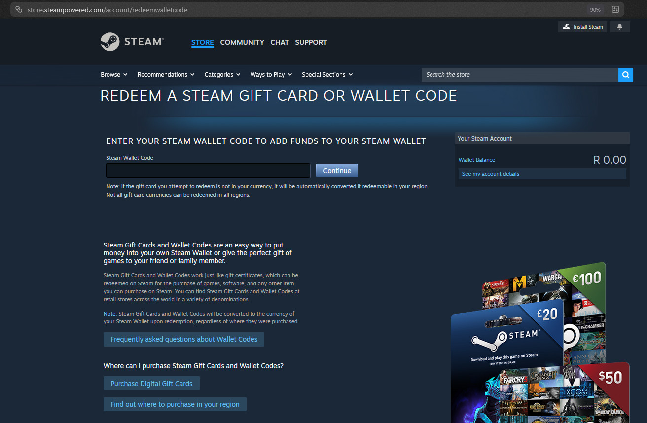 Steam gift cards for R80-1000 with a 10% discount.