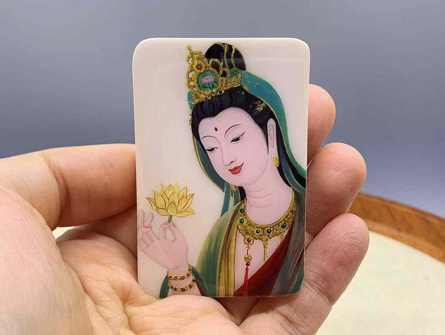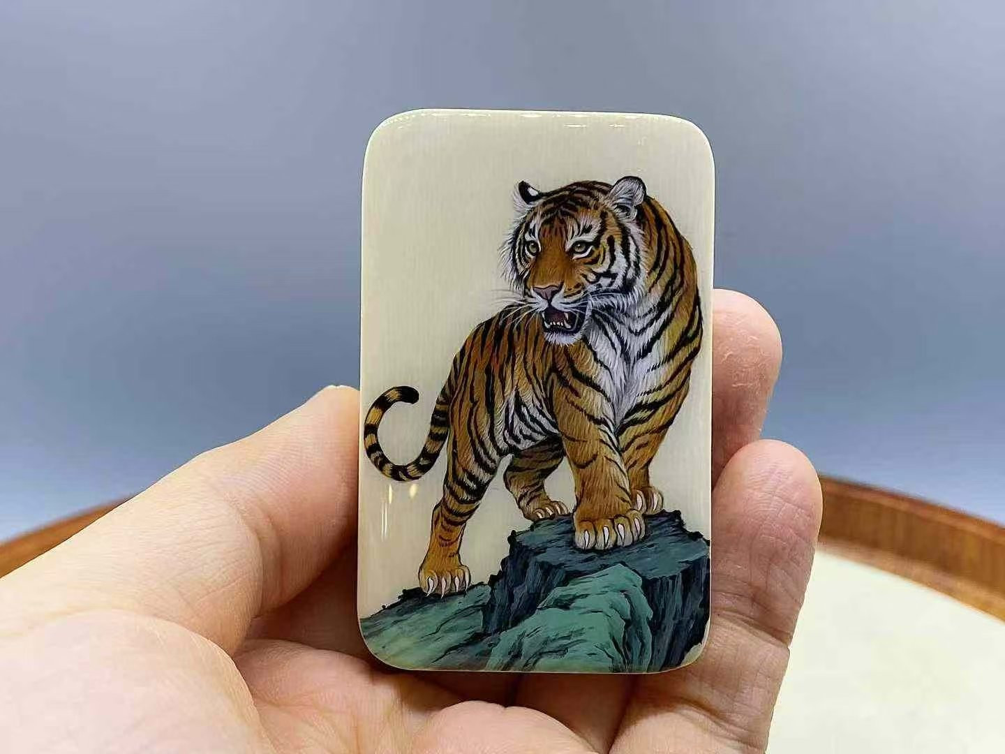 Made from select mammoth ivory, top-grade ice material, with delicate and clear grain, this piece is hand-painted with intricate and orderly craftsmanship. A perfect gift or personal treat! Dimensions: 40×60×10mm 37g