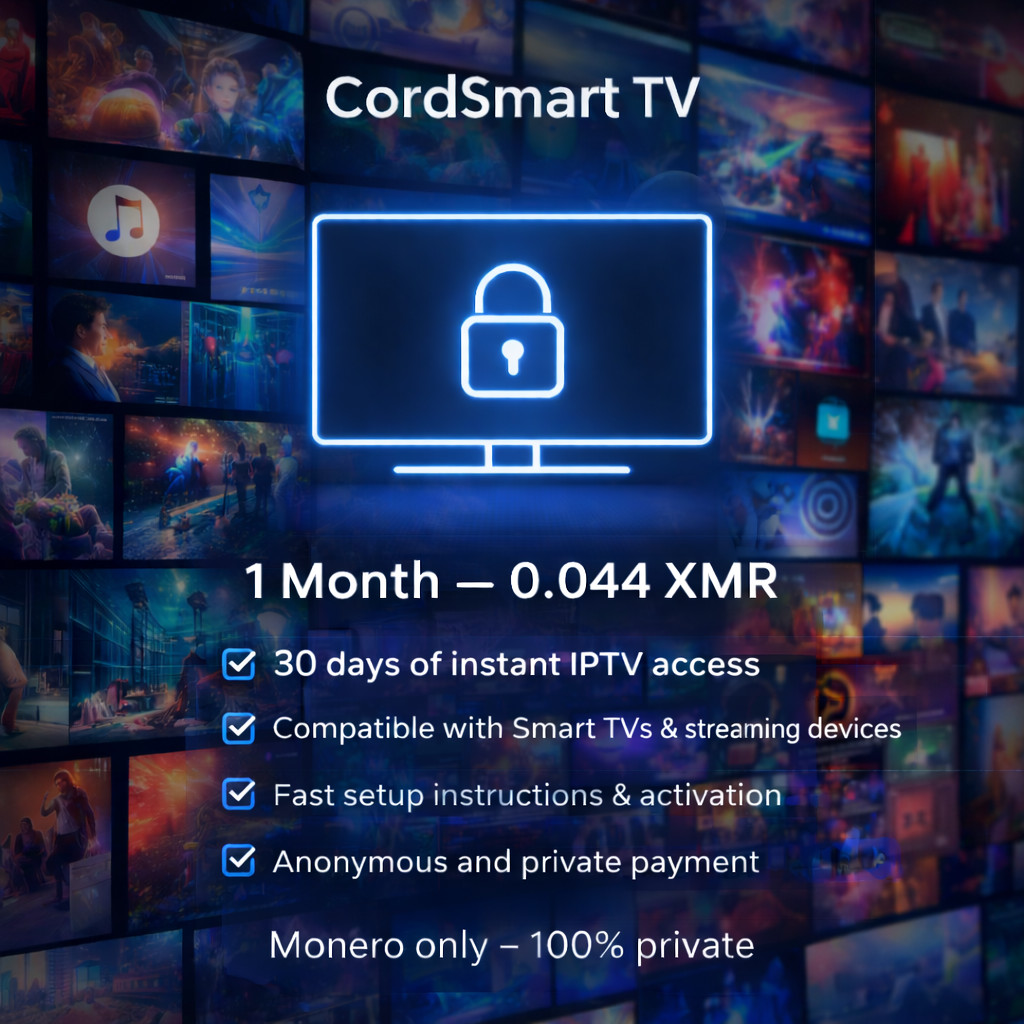 Reliable IPTV provider with 5+ years of industry experience. Focus on high-quality 4K streams, zero buffering, and 24/7 support. All transactions private – Monero only. Free 24-hour trials available.