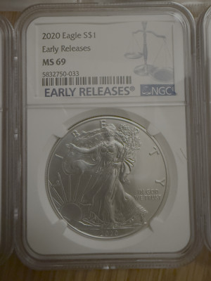 - (2) 2020 $1 Silver Eagle - NGC MS 69 Early Releases