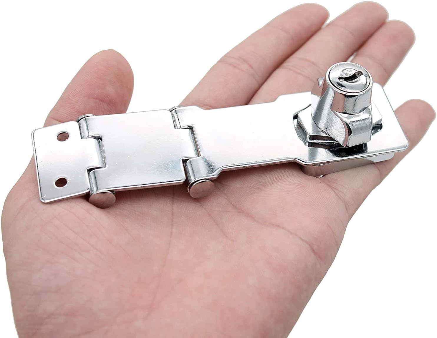 Need a hasp with two hinges instead of one. If it has a built in lock like the second picture, must also have at least one key