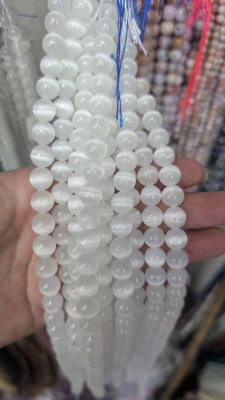 Fine Quality Round White Cat Eye Stone Long Strand