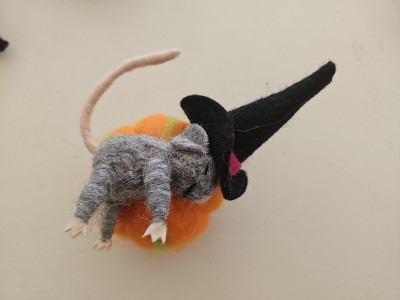 Halloween Decorations - Mouse in Witch Hat on Pumpkin