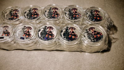 Each coin: 1 oz .999 fine silver, proof finish, colorized design + crystal insert, low mintage (5,000).