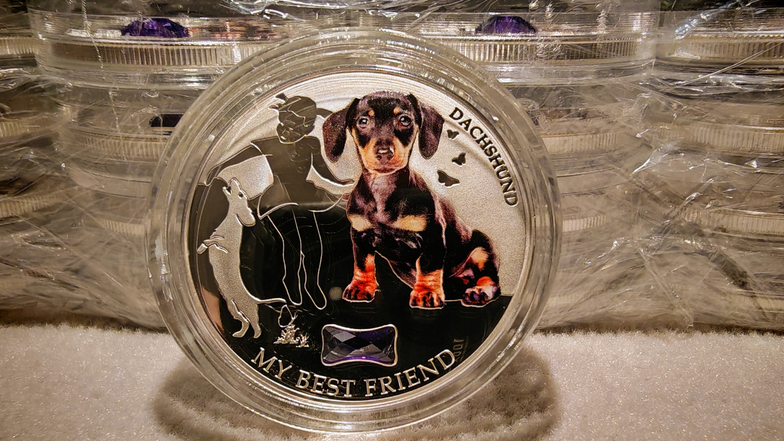 Tags: Silver, Fiji, 2013, Dachshund, Dogs & Cats, Proof, 1 oz, .999 Silver, Gemstone Insert, Rare, Collectible, Bullion, XAG, XMR, Investment