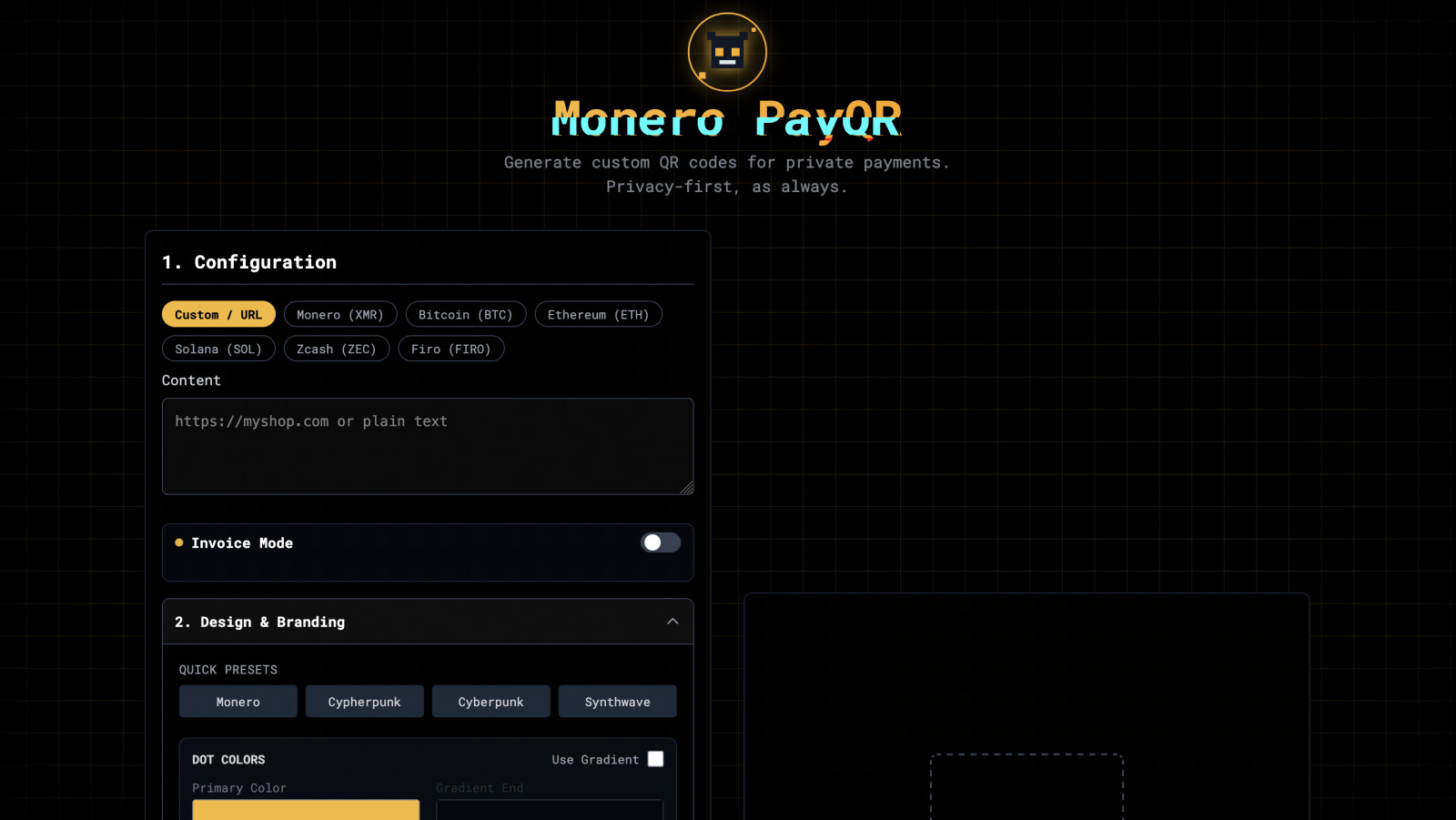 Tags: Monero, QR Generator, Crypto Invoices, Privacy Tools, Open Source, Digital Payments, Bitcoin, Ethereum, Solana