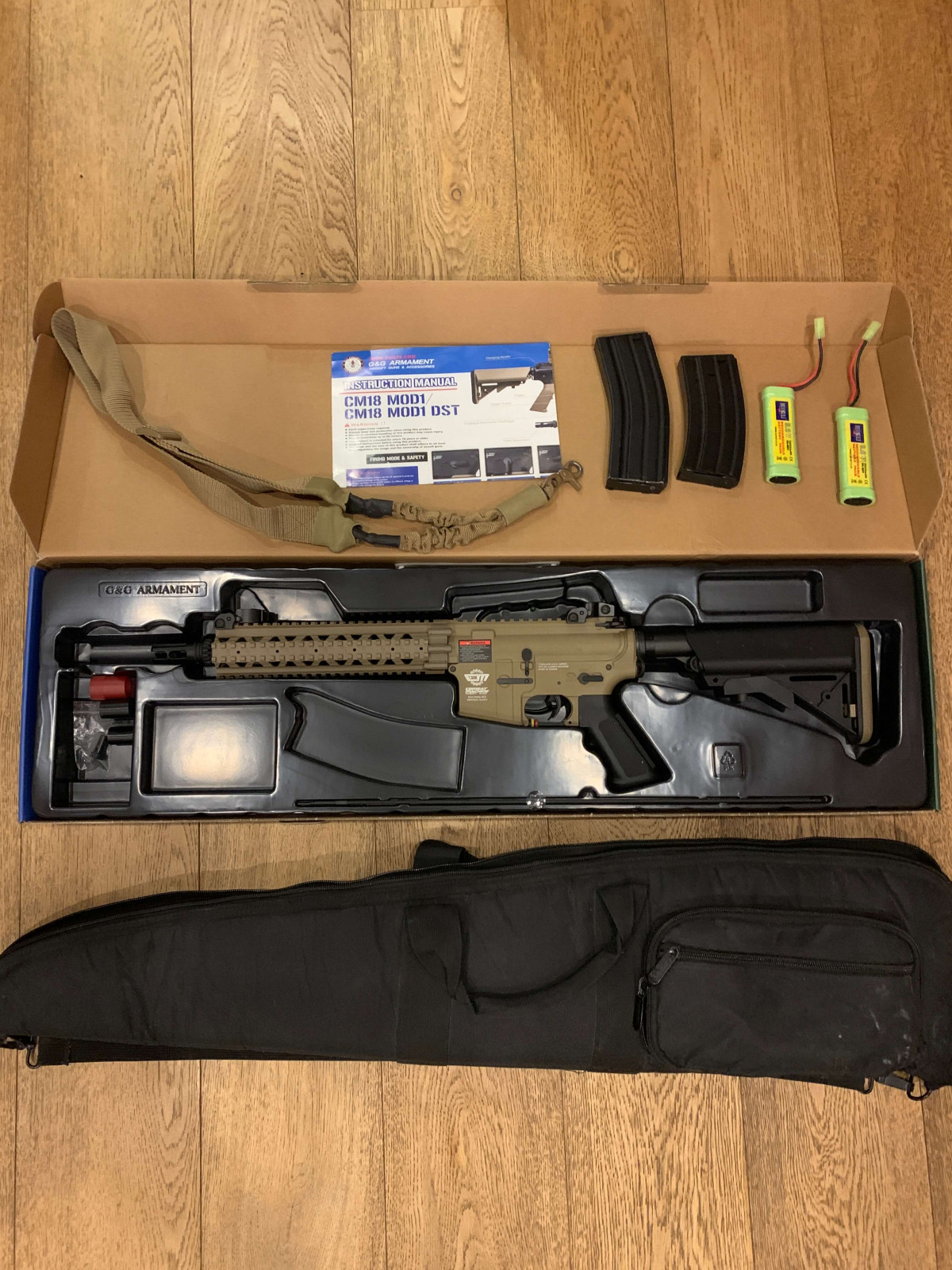 G&G CM18 MOD1 DST Airsoft Gun + Desert Sling + 2 Mags + 2 9.6v 2800MaH Batteries