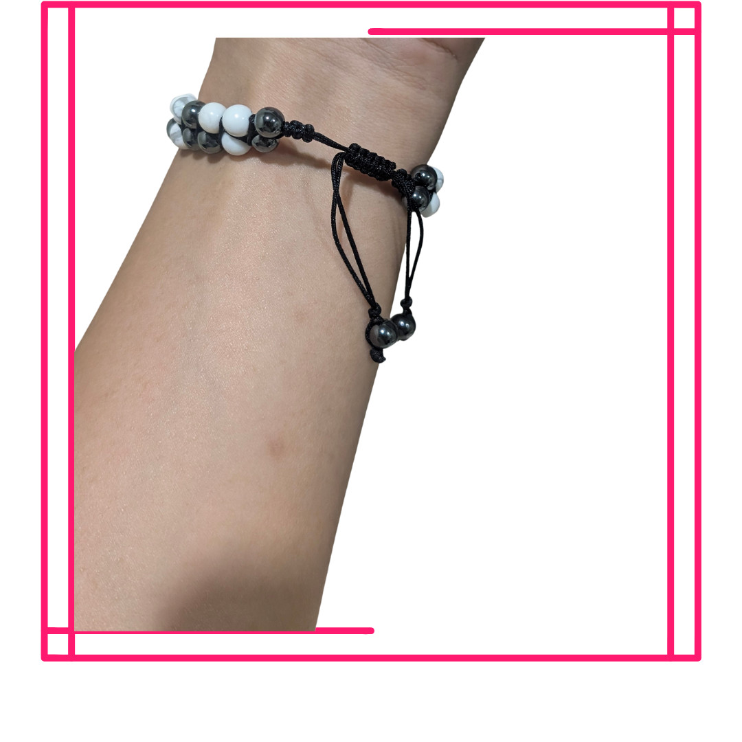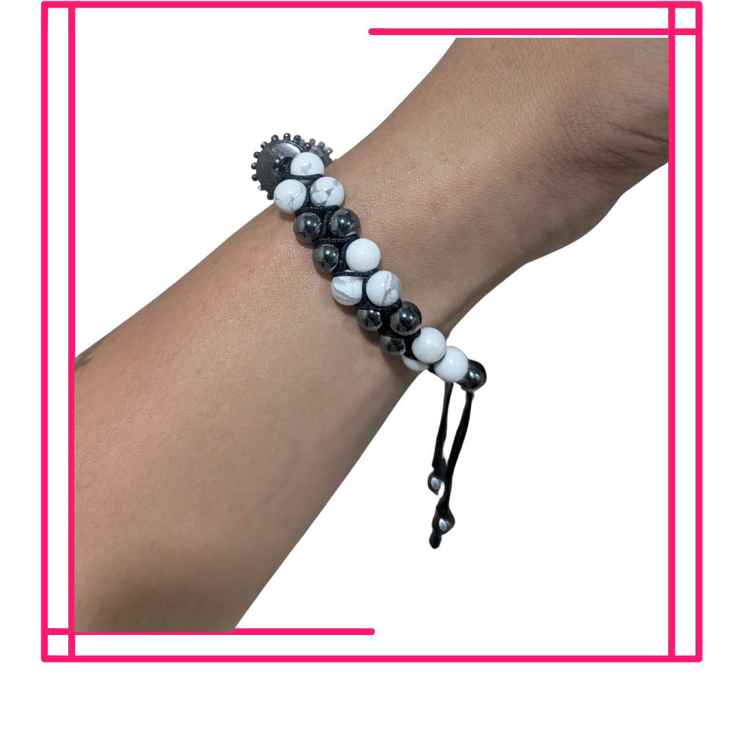 Tags: Golden, Vessavana, Bracelet, Howlite, Hematite, 8mm