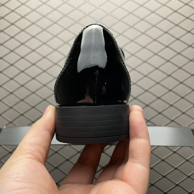 triangle-logo leather loafers
