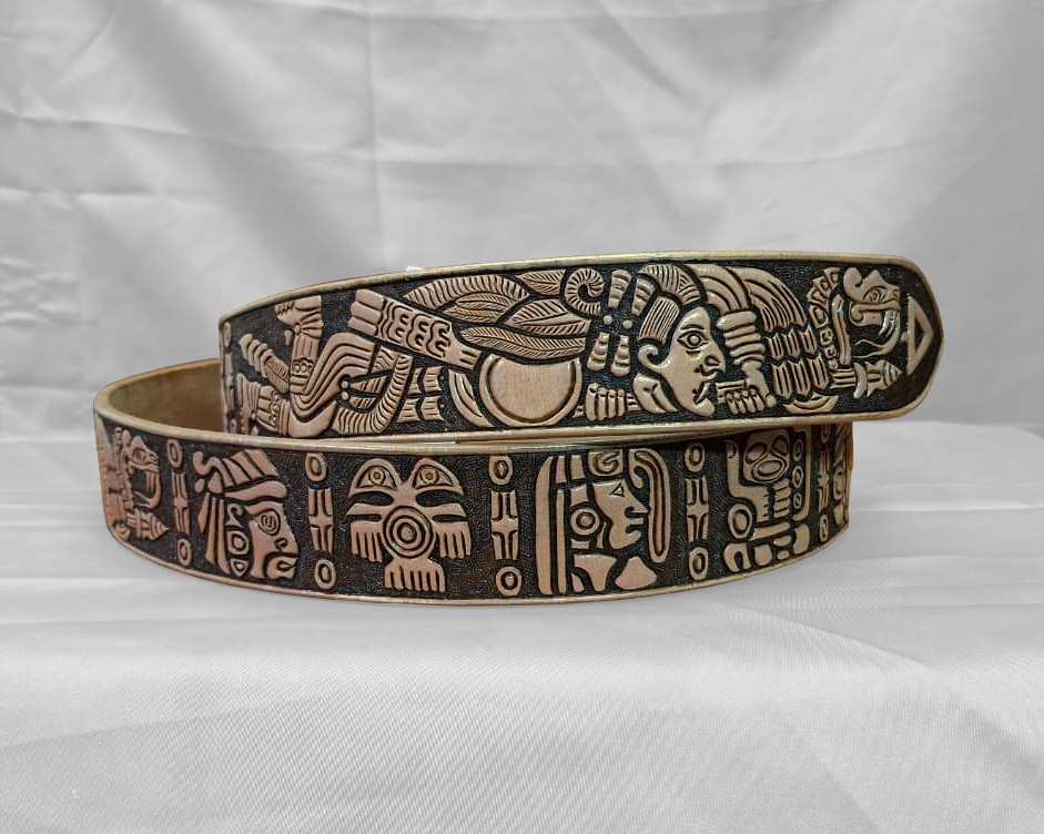 Handmade Leather Belt - 3D Mayan Hieroglyphics