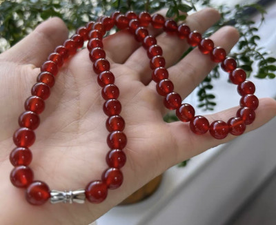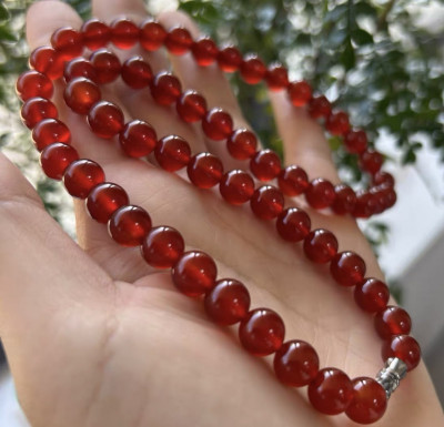 Northern Red Agate Necklace! 8mm in size, brand new, beautiful piece, icy clear and lustrous, with a rich, oily sheen; the quality is clearly visible.