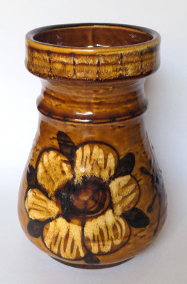 Ceramic Vase Flower-Themed Brown Height 15cm Upper ⌀ 7,6cm Lower ⌀ 10,5cm