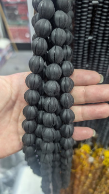 Wholesale Matte Black Onyx Pomelo Beads Long Strand