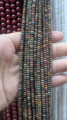 4mm Wholesale Round Picasso Jasper Heishi Rondelle Disc Long Strand