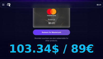 NoFee 103.34$/89€ Redeemed Rewarble/Mastercard 3DS Global Anonymous
